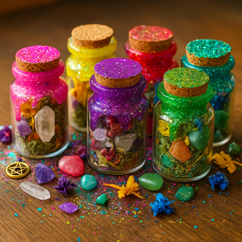 These are more than pretty bottles — they’re little treasures for your soul, made to uplift your space, spirit, and intentions.  Whether you're calling in love, courage, peace, or creativity, these enchanted jars act as soulful companions—anchoring your wishes, steadying your spirit, and lighting your way forward.