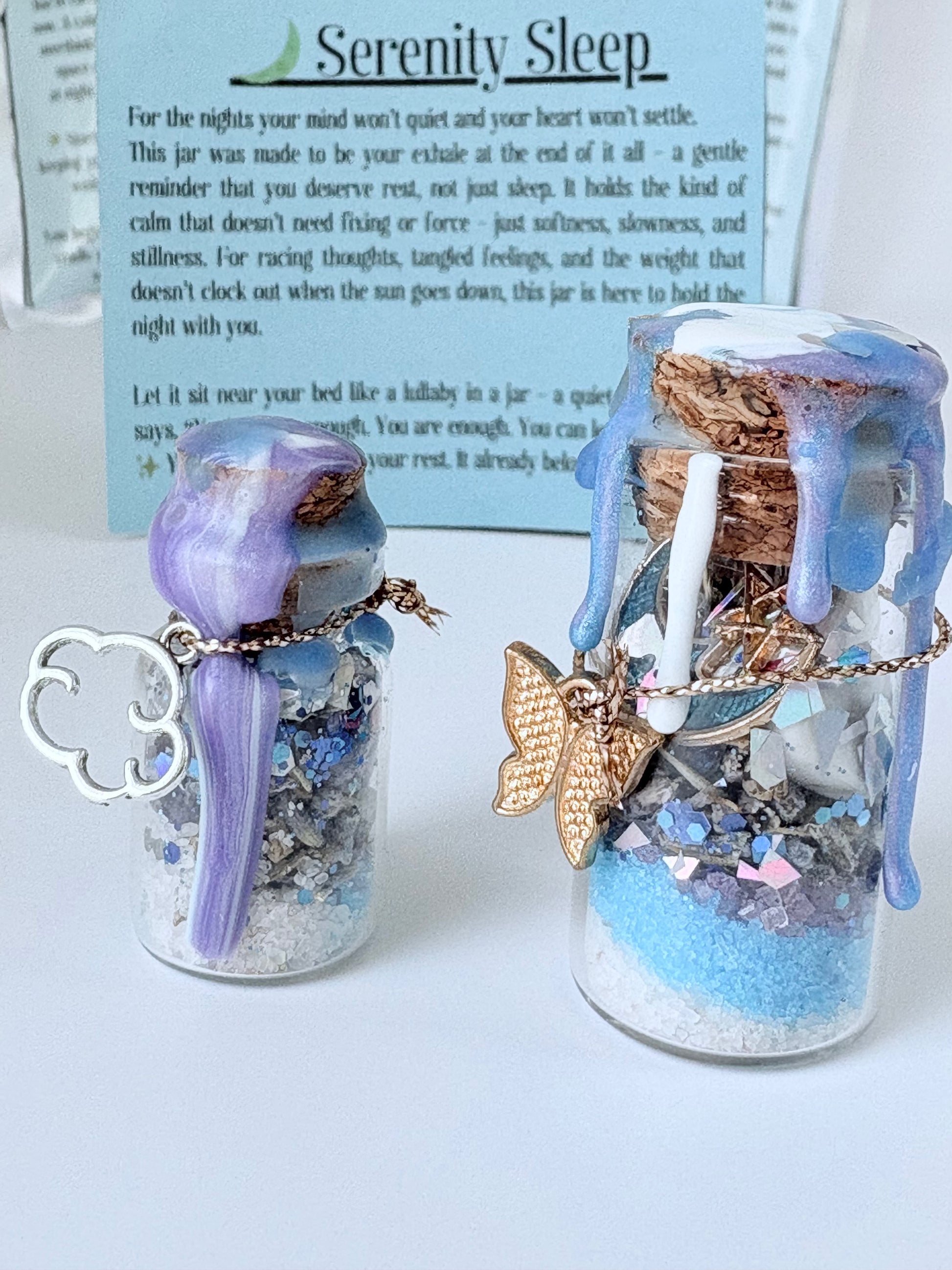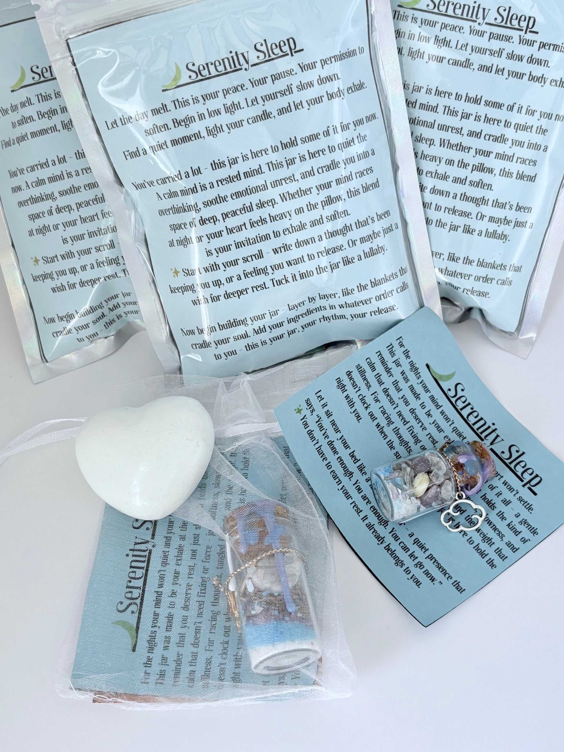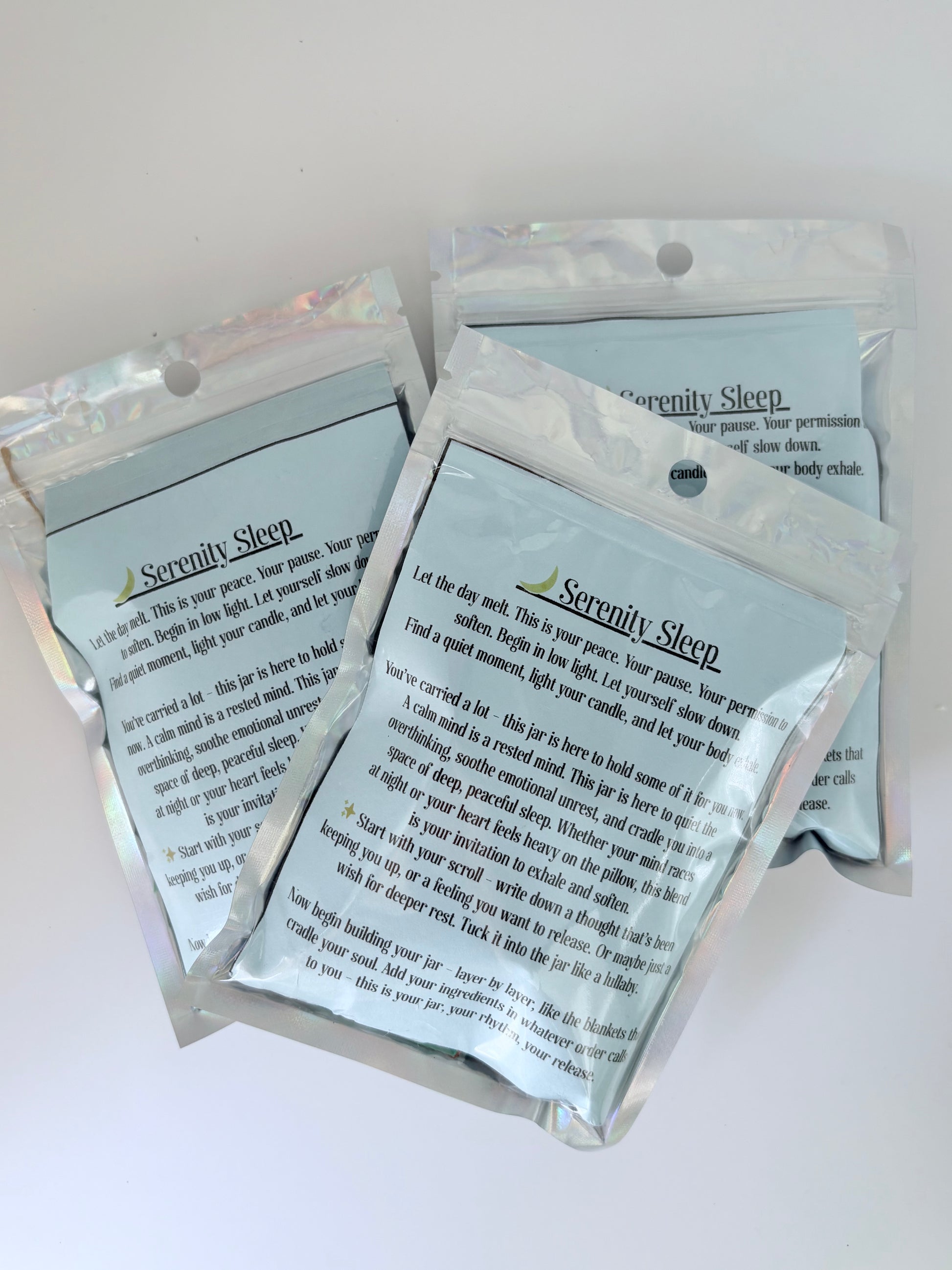 Your nighttime nervous system reset. This jar is like a lullaby in a bottle — crafted to ease racing thoughts, quiet the mind, and cradle your energy into deep, restorative rest. Whether you're an overthinker, a vivid dreamer, or someone who just can't shut their brain off, Serenity Sleep helps you soften into stillness. Infused with calming herbs, soft protective energy, and a sprinkle of dream magic, it’s your gentle guide to a peaceful night and brighter mornings.
