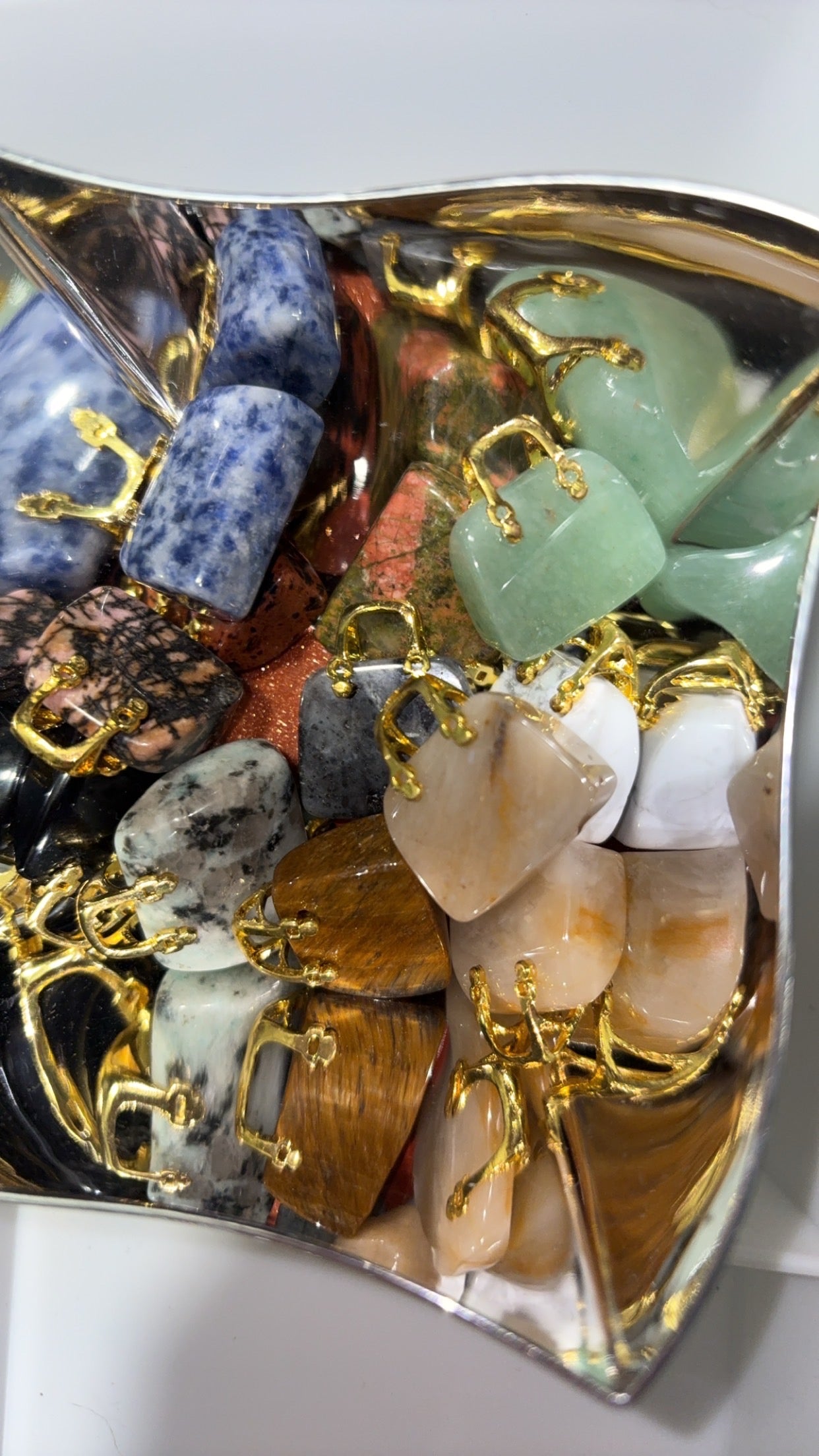 Each purse is carved from natural stone and adorned with a golden handle, making it the perfect blend of crystal energy and fashion charm.