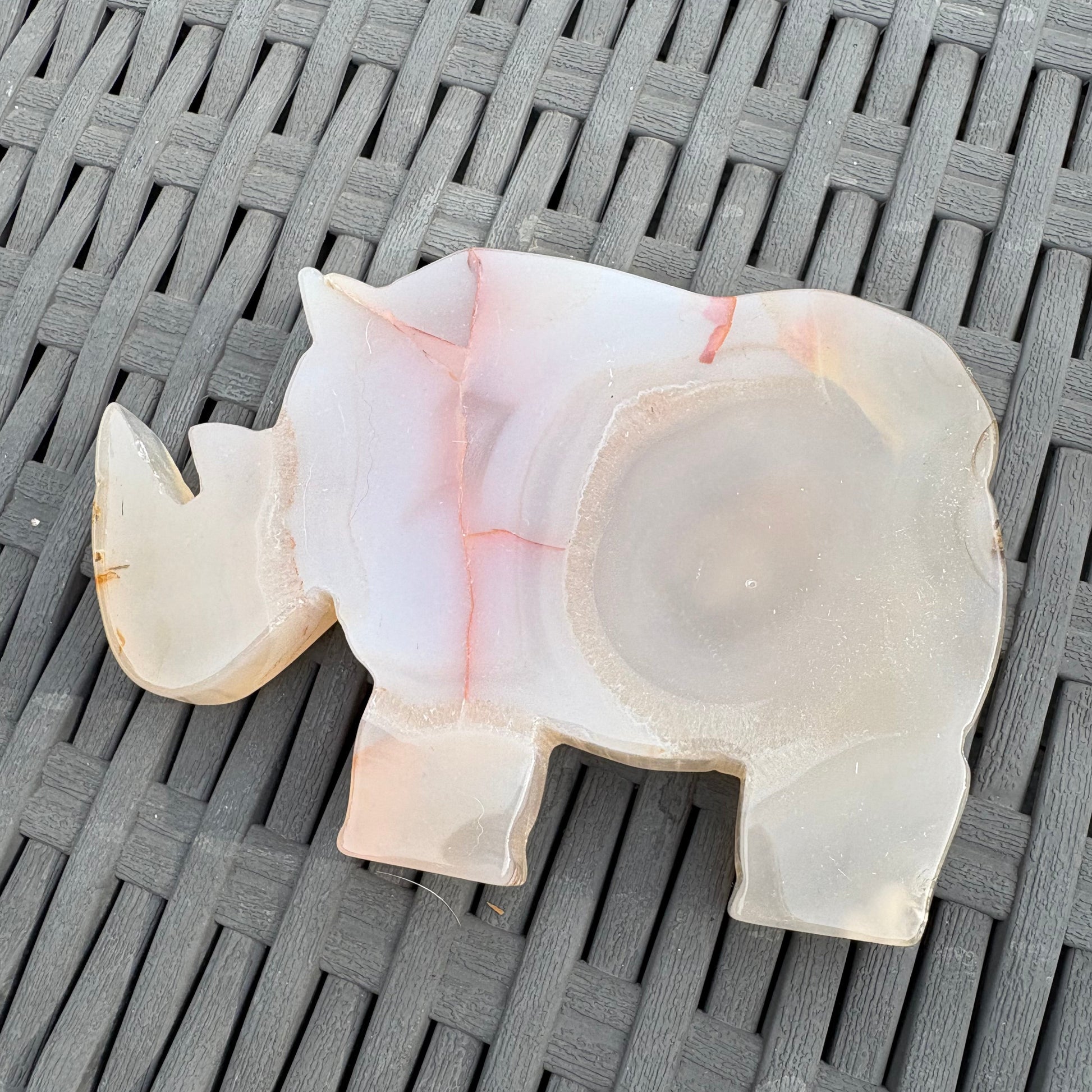 Agate is a stone of balance and stability—just like a rhino: solid, dependable, and surprisingly gentle. This piece supports inner strength, emotional resilience, and grounding energy for those walking a strong, steady path.