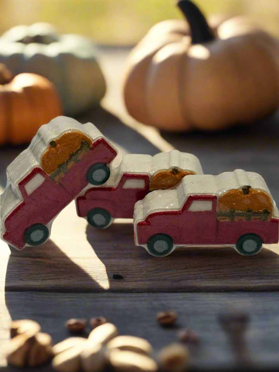 Take a little road trip into autumn with our Vintage Truck with Pumpkin Bath Bomb 🚚🎃. Handcrafted in the shape of a charming old pickup carrying its pumpkin bounty, this fizzy treat is scented in Autumn Day — a crisp, cozy blend of golden pear, apple, bergamot, chrysanthemums, and warm sunshine.
