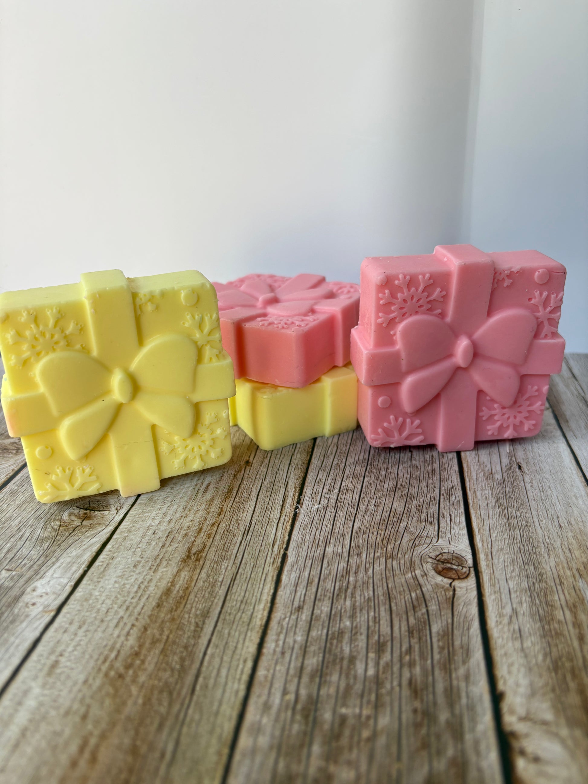 This charming gift-shaped artisan soap is the perfect winter treat for your skin — and your senses. Each bar is hand-poured and detailed with delicate snowflakes and a bow, making it just as beautiful as it is nourishing.