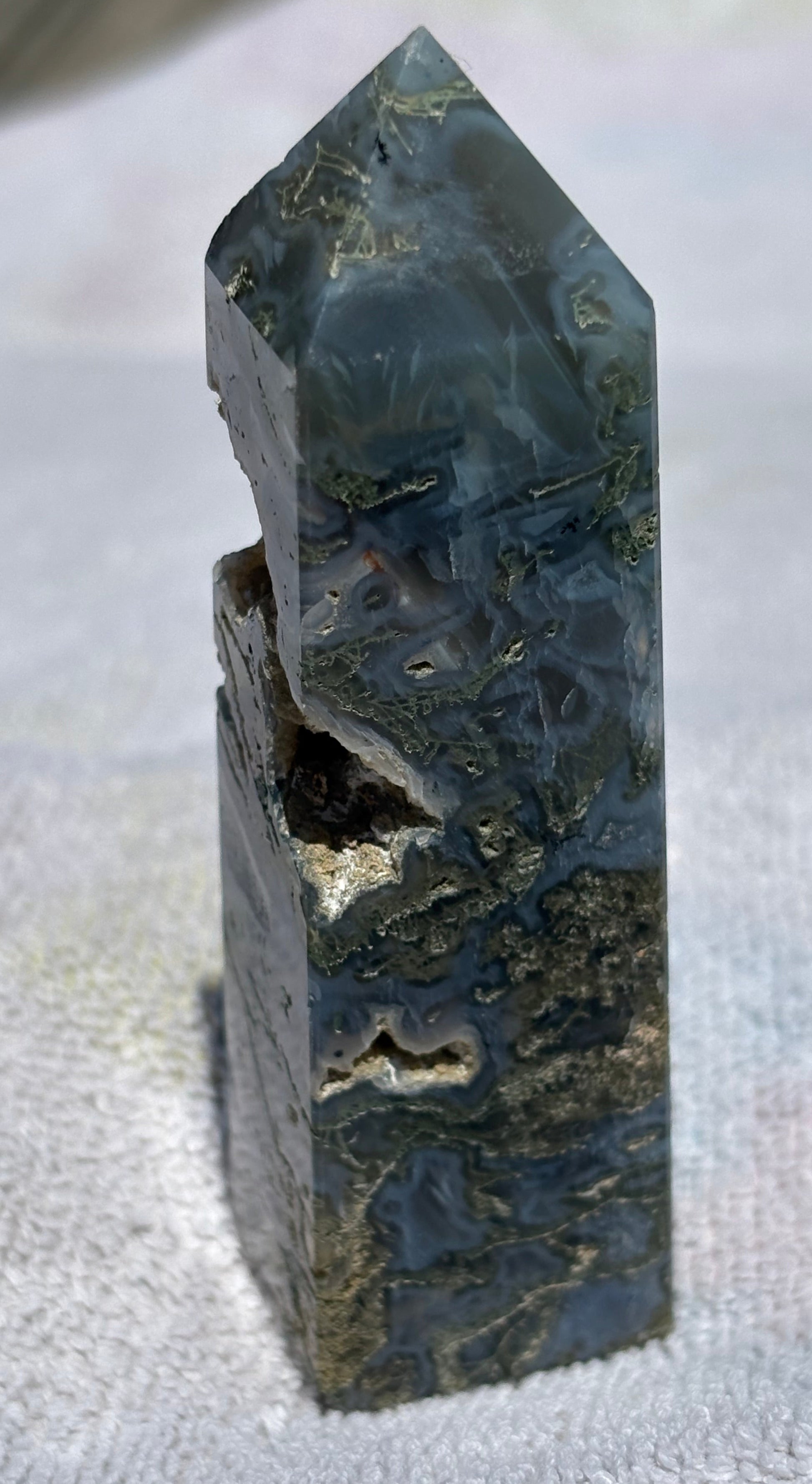 Moss Agate Tower w/ Druzy Pocket