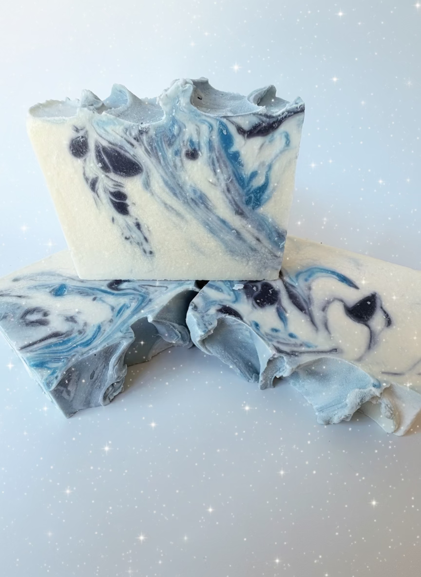 Let yourself melt into the chill of something beautiful. Snowflake Haven is more than just a bar of soap — it’s a moment of serenity carved from frost, infused with the invigorating scent of fresh rosemary and cooling mint.