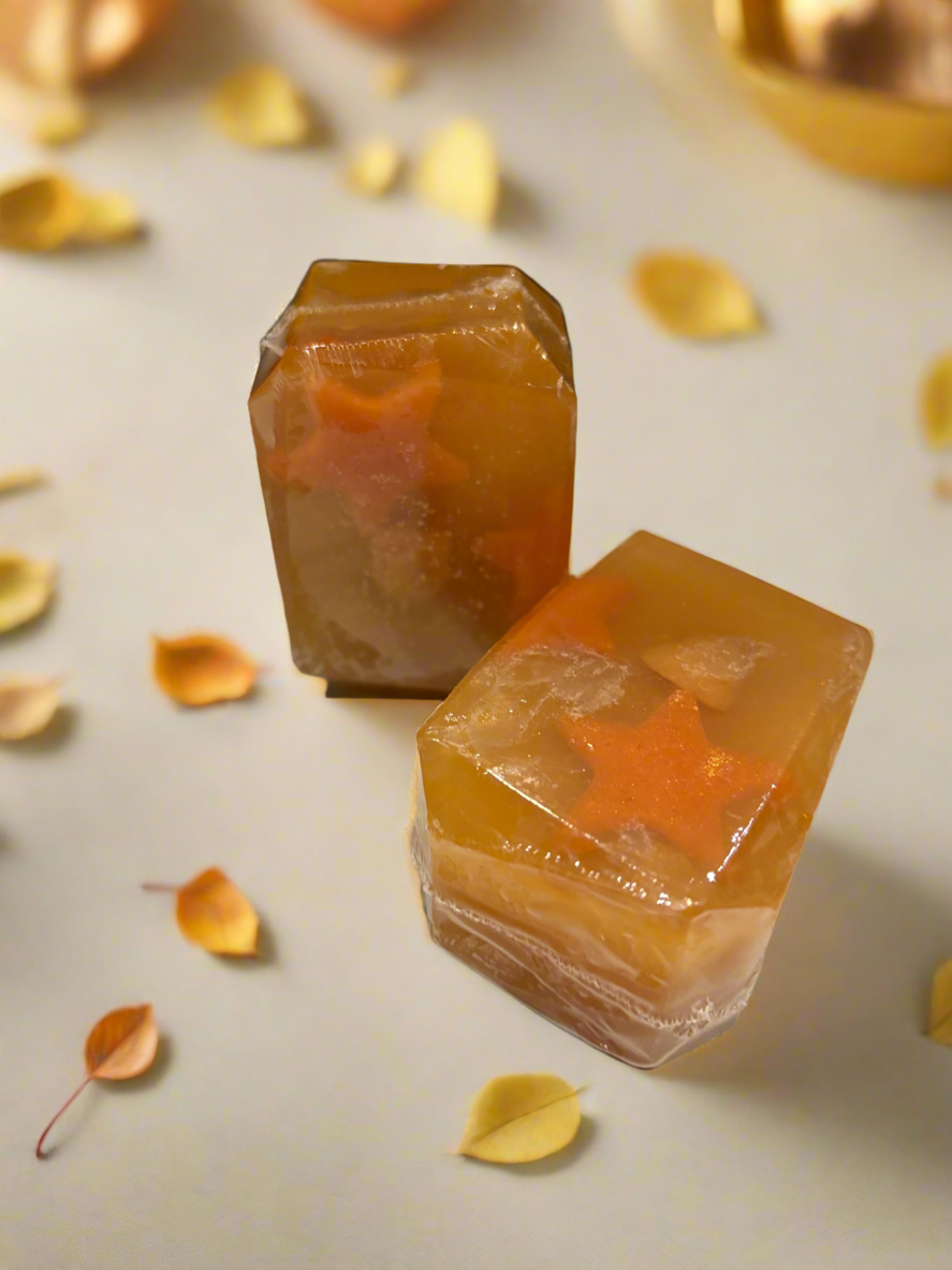 Capture the magic of a crisp fall evening in Stars Hollow with this enchanting crystal soap. Handcrafted in warm golden hues, each bar holds twinkling star embeds and a piece of genuine yellow quartz for a touch of energy and light.