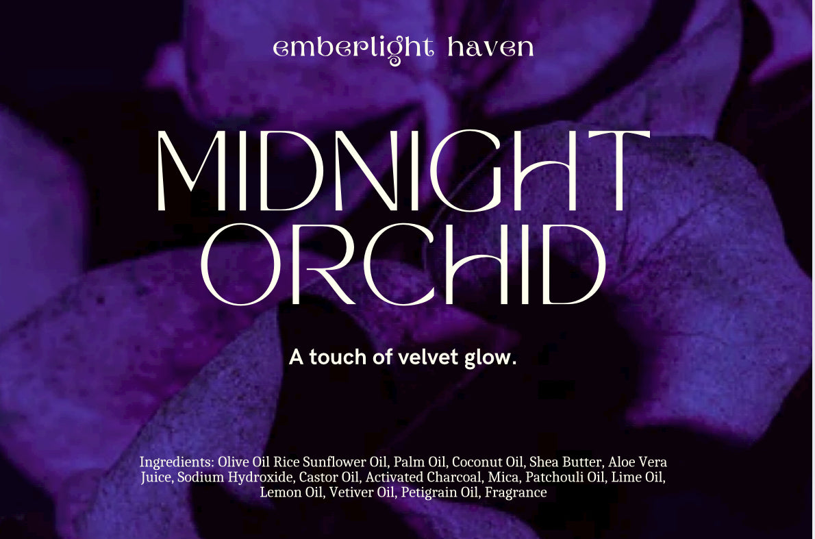 🌙Indulge in the dark elegance of Midnight Orchid — an artisan soap crafted to awaken your senses and leave you feeling refreshed and empowered. The fragrance is a captivating blend of aquatic notes, citrus zest, and earthy sandalwood, swirling together as mysteriously as night itself.